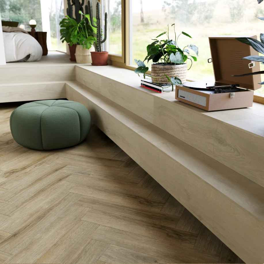 ✔ PVC-freier Fischgrätboden mit integriertem Kork